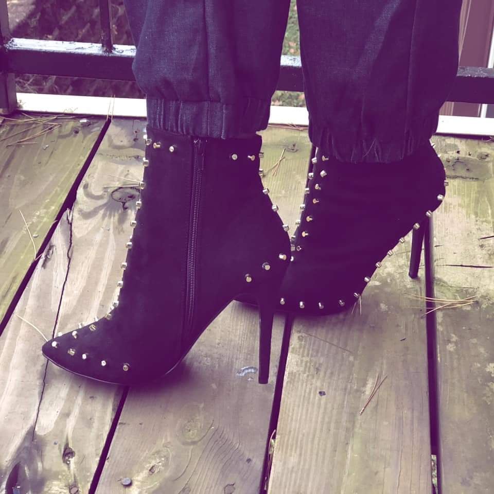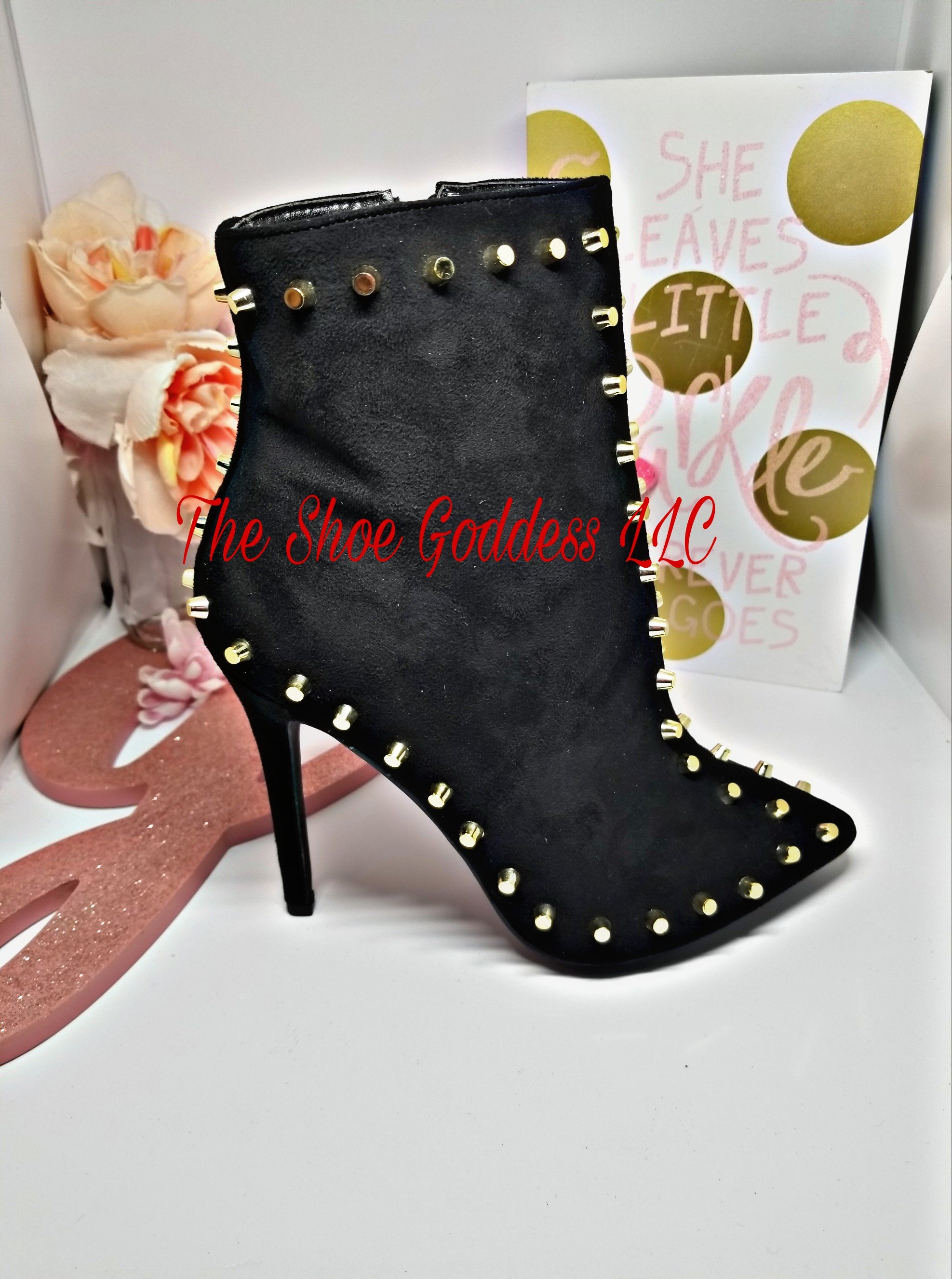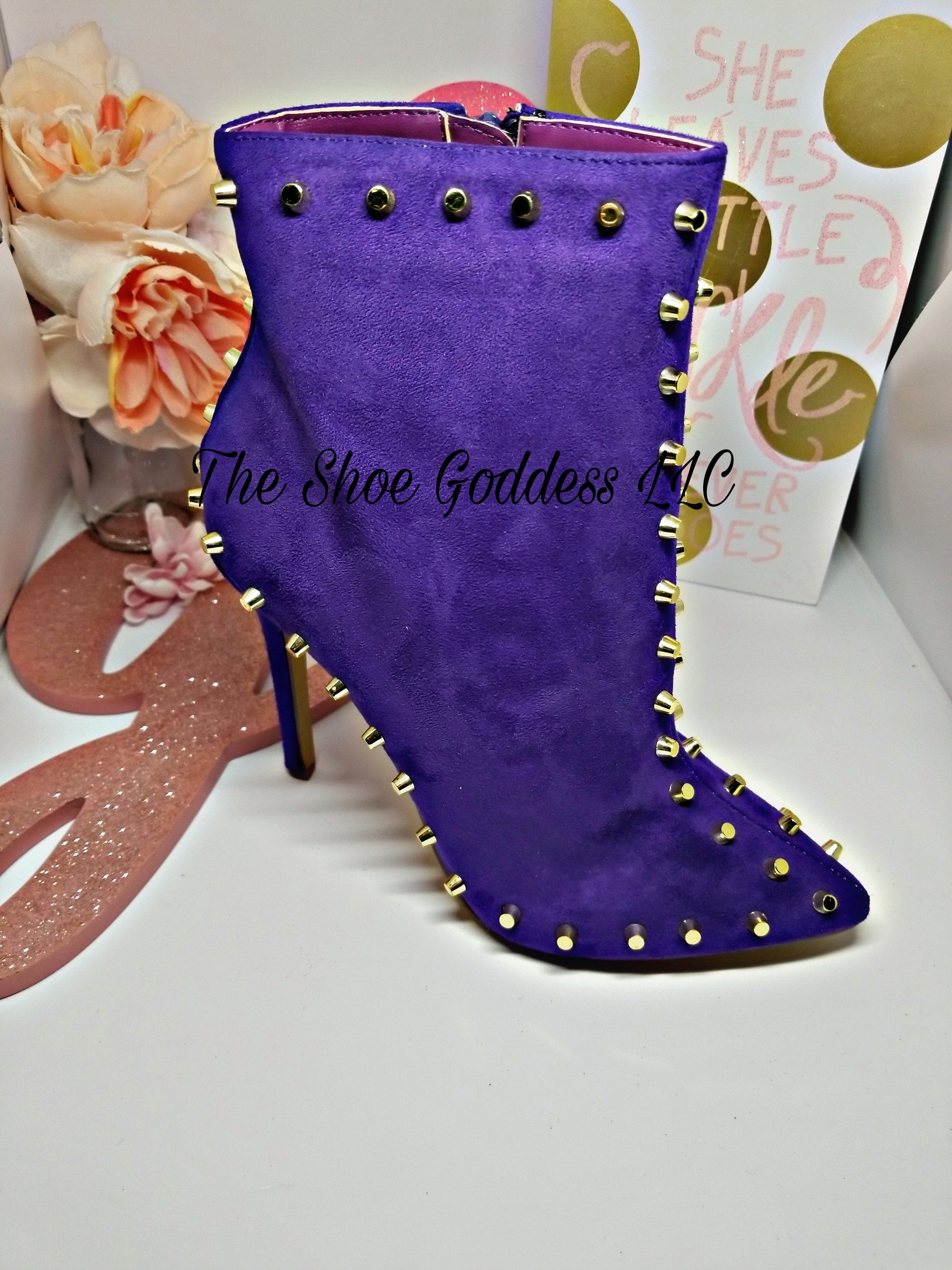 "Kenya" Black and Purple studded pointy toe Stiletto booties